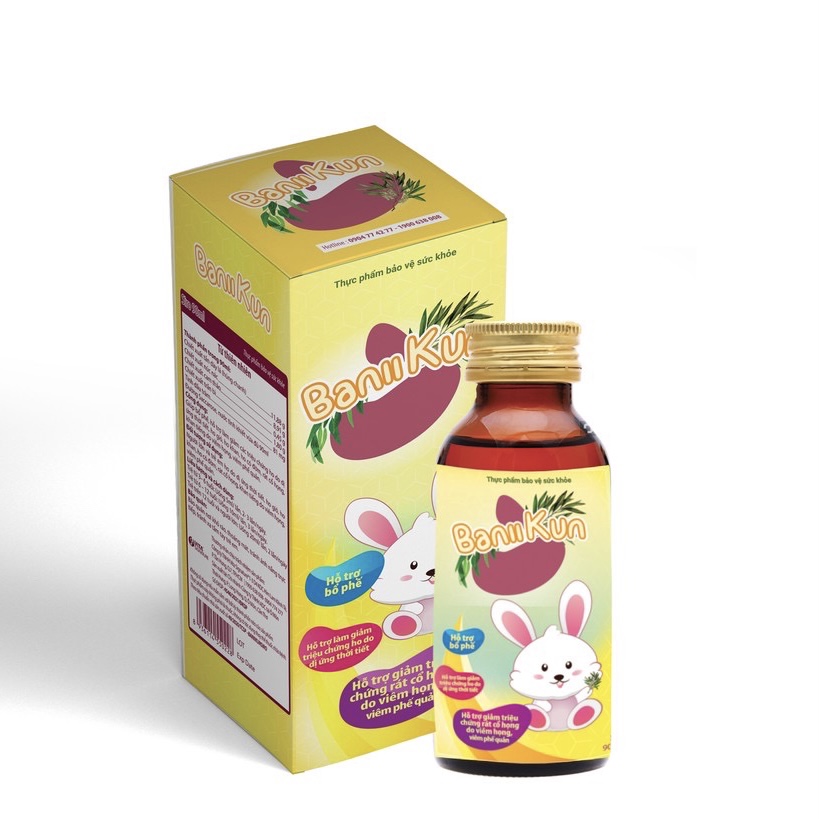 Siro BaniiKun chứa các thành phần chính từ tự nhiên giúp giảm ho, đau rát họng, giúp thông thoáng đường hô hấp khi bị viêm họng, viêm phế quản. Sản phẩm dùng được cho cả người lớn và trẻ em.